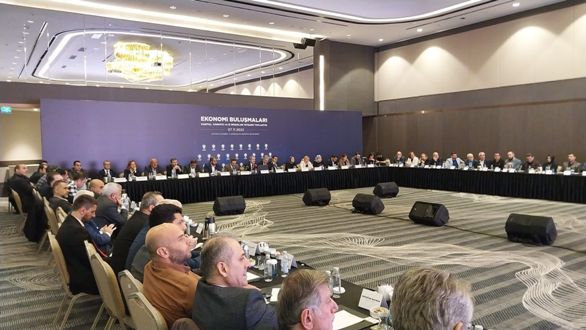 Türkiye’nin ekonomik durumunu istatistiksel veri ve belgelere dayalı olarak slaytlarla anlatan Hazine ve Maliye Bakan Yardımcısı Mahmut Gürcan, kendileri için önemli olanın iş insanlarına “Türkiye’nin ekonomik görünümünü anlatmak ve ardından siz değerli iş insanlarımızın sorularını yanıtlamak ve bize ilettiğiniz talep ve hususları bu masanın etrafında tartışmak” olduğunu belirttiği konuşmasında “Türkiye Ekonomik Modeli uygulamasıyla yatırımın, üretimin, ihracatın ve istihdamın arttığını belirterek, dünyanın gıptayla izlediği başarılı sonuçlar alındığını“ söyledi.