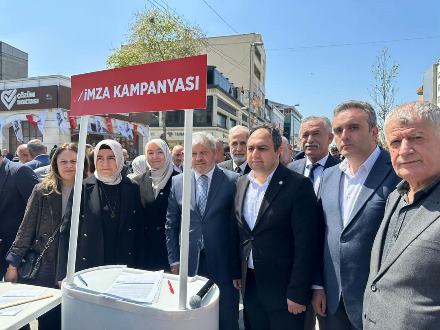 Halkımızın başlatılan bu kampanyaya teveccühünü, anayasal güvenceye duyulan ihtiyaç noktasındaki iradesini; kurulan stantlarda gayretle çalışan teşkilatımız ile bu emeğin meyvesi olarak toplanan imzalarda görmekteyiz.