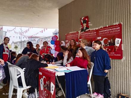 CHP Maltepe İlçe Kadın Kolları Başkanı Fidan Yıldız öncülüğünde kadın örgüt mensuplarının katılımıyla Maltepe Cumhuriyet Meydanı’nda kurulan İlçe Kadın Kolları standında 15.00 ile 18.00 saatleri arasında "Cumhuriyetin Kızları Geleceği Yazıyor" mottosuyla program düzenlendi.