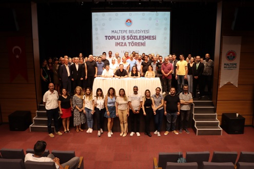 Maltepe Belediyesi ile işçileri arasında yaklaşık 2 aydır süren “Toplu İş Sözleşmesi” tarafların anlaşmasıyla birlikte sonuçlandı. Yaklaşık bin 700 işçiyi ilgilendiren ve primlerle birlikte yüzde 100’ün üzerinde bir zamla sonuçlanan görüşmeler sonrasında Yaşar Kemal Kültür Merkezi’nde imza töreni düzenlendi. Törende Belediye Başkanı Ali Kılıç’ın yanı sıra sendika temsilcileri, Belediye Başkan Yardımcıları, birim müdürleri, Mataş A.Ş. yetkilileri, Genel-İş Sendikası Anadolu Yakası 2 No’lu Şube ve Sodem-Sen temsilcileri katıldı.