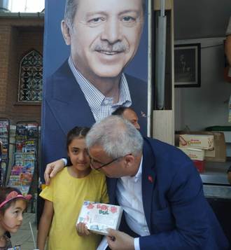 Başkan Akkaya, AK Parti İstanbul Milletvekili Eyüp Özsoy ve beraberinde yönetimleriyle, Cumhurbaşkanı Recep Tayyip Erdoğan'ın minik hayranını ziyaret ederek 'böyle bir aşk görülmemiş dünya da..' şarkısını birlikte söyledi.
