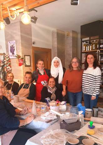 Kooperatif merkezini ziyaretimizde açılan seramik kursuna katılan üretken kadınların sayısının arttığını gördük ve ilginin oldukça büyük olduğunu gözlemledik. Maltepe Halk Eğitimi Merkezi Usta Öğreticilerinin rehberliğinde yürütülen seramik kursları yeni katılımlarla her Salı Kooperatif merkezinde çalışmalarını sürdürüyor.