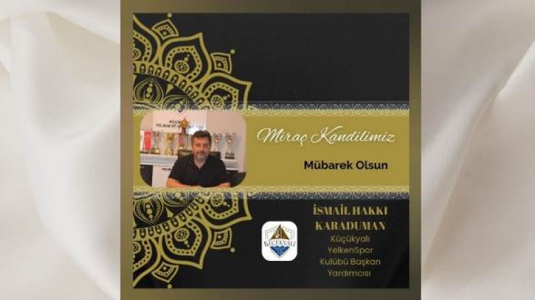 Küçükyalı YelkenSpor Kulübü Başkan Yardımcısı İsmail Hakkı Karaduman'dan Miraç Kandili Mesajı