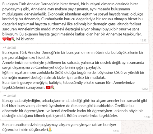 Derneğin burs yardımında bulunduğu programa katılan öğrencilerin mesajlarını aşağıda yayımlıyoruz.