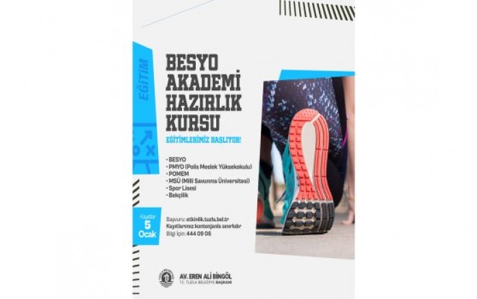 Tuzla Belediyesi, öğrencilerin fiziki yeterliliklerini geliştirmek ve parkur sınavlarına hazırlanmalarına destek olmak amacıyla hayata geçirdiği BESYO Akademi Hazırlık Kursları’nın başlangıç tarihini duyurdu. Kayıtlar, 5 Ocak Pazartesi günü saat 11.00’den itibaren Tuzla Belediyesi’nin resmi internet sitesi üzerinden yapılabilecek.