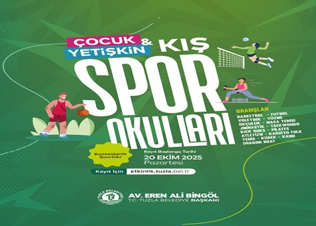 Tuzla Belediyesi tarafından her yıl düzenlenen ve büyük ilgi gören çocuk ve yetişkin kış spor okulları için yeni dönem kayıtları başladı. Sporun her yaştan bireyin yaşamında yer almasını amaçlayan program kapsamında, çocuklar ve yetişkinlere yönelik onlarca branşta ücretsiz eğitimler sunulacak.