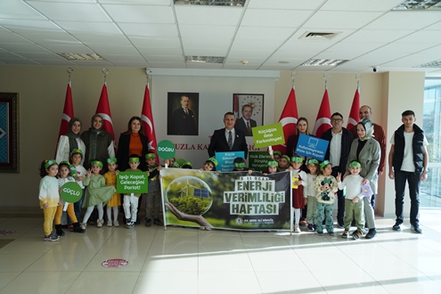 Tuzla Belediyesi Akademi Çocuk (4-6 yaş) öğrencileri, enerji tasarrufuna dikkat çekmek amacıyla Tuzla Belediyesi ve Tuzla Kaymakamlığı’nı ziyaret etti. Minik öğrenciler, ellerinde taşıdıkları pankartlarla kurumları dolaşarak, kamuda enerji verimliliğinin önemine vurgu yaptı.