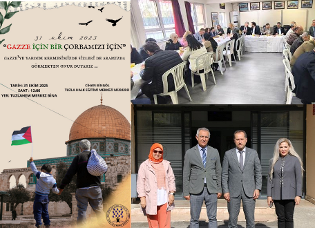 Tuzla Halk Eğitimi Merkezi tarafından düzenlenen ‘’Gazze İçin Bir Çorbamızı İçin’’ kermesi, Tuzla ilçe Milli Eğitim Müdürü Metin Çangır, Ak Parti ilçe Başkanı Şeref Çolak ve Yönetim Kurulu, Saadet Partisi İlçe Başkanı Resul Kılıç ve Yönetim Kurulu, BBP İlçe Yönetimi, Tuzla Mal Müdürü Cennet Handekli, Tuzla İlçe Tarım ve Orman Müdürü Turan Siyer, Tuzla Nüfus Müdürü Ferdane Yılmaz, okul ve kurum müdürleri ile kursiyerler ve vatandaşların katılımıyla gerçekleşti.